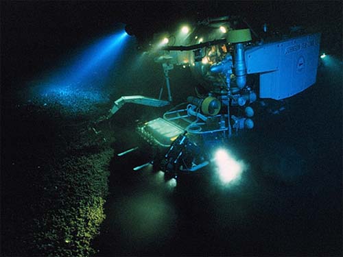 Harbor Branch Oceanographic Institute’s submersible, the Sealink, floats above a brine pool. Photo Courtesy of NOAA