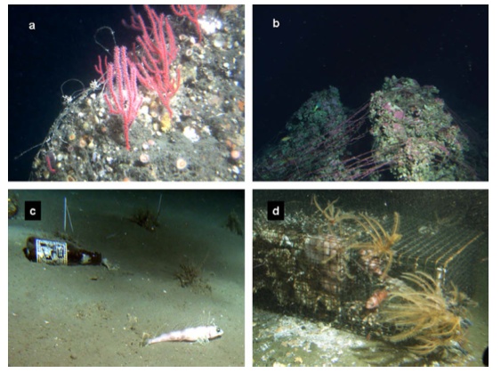 The discovered trash was dominated by plastics and typically monofilament line from recreational fishing. These densities of the trash diminished as frequency from ports like Monterey, Santa Cruz, and Moss Landing, increased. As distance from shore increased, trash “diversity” increased with fishing debris becoming less common. As most California fisheries target rockfish, rocky surfaces contained disproportionally more trash. Also disheartening,