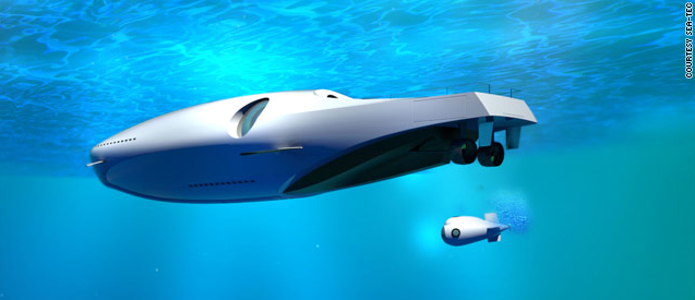 Two new design offerings for the mashup list are the superyacht that transforms into a submarine and an airplane that does the same. The U-010 Undersea Yacht is likely to be produced within the next 5 years for multi-millionaire venture capitalist and former board member of Hewlett Packard, Tom Perkins. The current design features the best of underwater exploration and 1960’s, Ratpack, loung swankiness. Describe new species and habitat, drink a Manhattan, all while wearing smoking jacket.