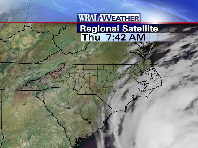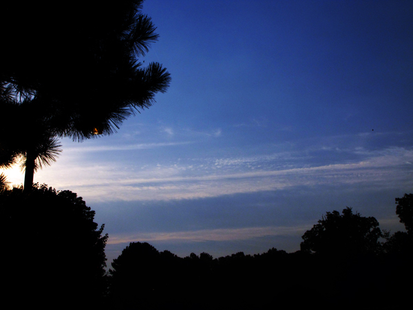 In Durham, I am nearly 2-3 hours from the North Carolina coast. With relation to Earl, the local forecast is that this far inland we are unlikely to see any rain and a just a moderate breeze. As of 7:45 am this morning the eye was 475 miles from Durham, yet the outer fingers of Hurricane Earl are brushing by. Of course my photograph is not nearly as nice as the Ms. KZ but she is after all a professional photographer. What is that a wide angle lens? Show off!