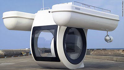 Equally cool, although slightly less James Bondish, is the semi sub Raonhaje Ego Submarine. The cockpit is submerged between the two floating pontoons. The steering is supposed to be similar to a car. With the acrylic windows and all electric systems with a an 8-hour battery life, your are sure to get some exploring done.