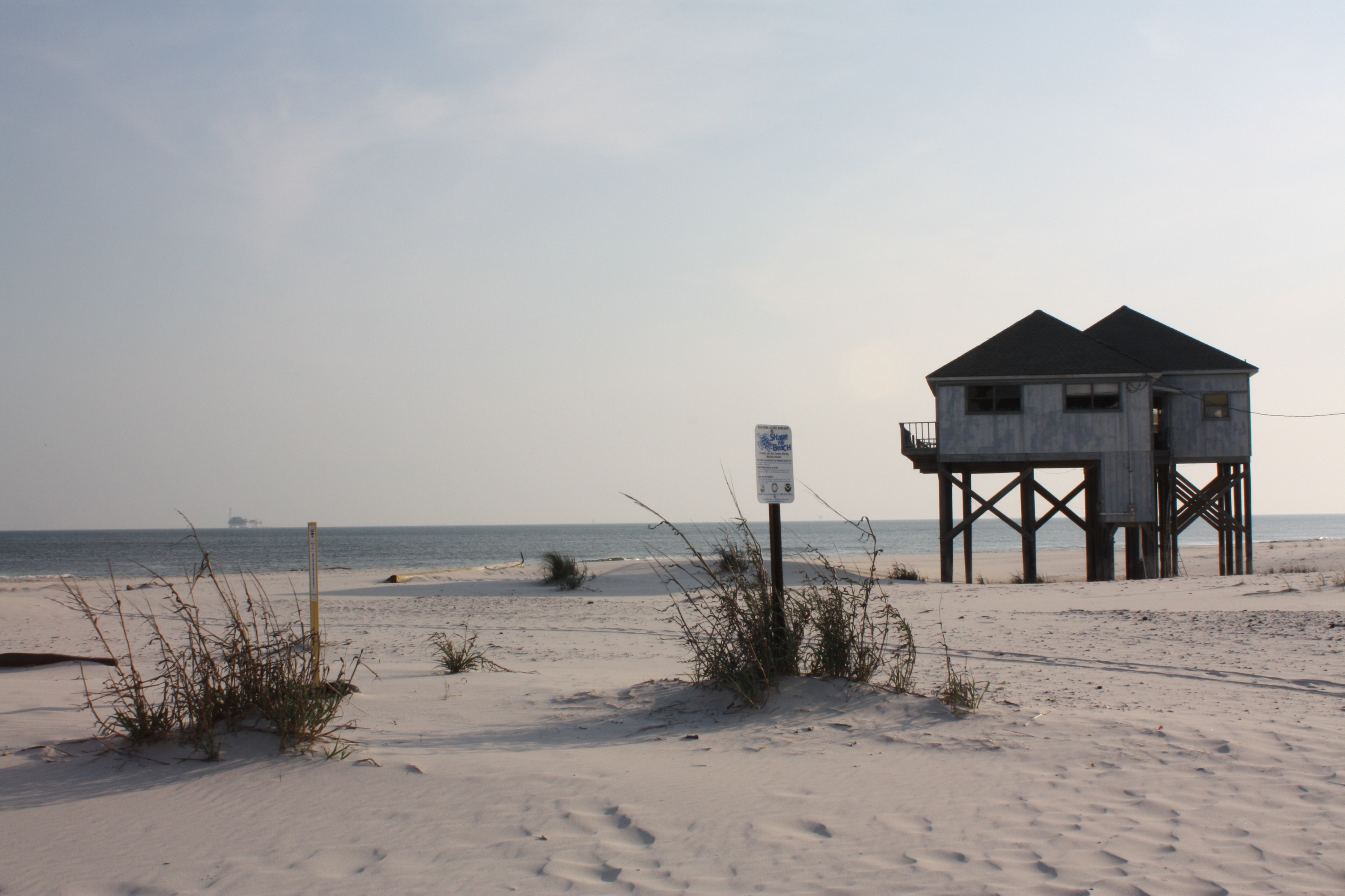 Spring is a time of renewal and rebirth. Right now it certainly feels like the Gulf is coming back to life, out of the (literal) blackness that followed the BP spill. Last Autumn this coast was a ghost town everywhere I went – no cars, no tourists, only locals shaking their heads and venting their frustrations. Needless to say, I was happily surprised to see Dauphin Island so bustling today; there were lots of tourists, families on the beach and patrons at most restaurants I passed. I’m not saying everything is fixed – far from it – but Americans seem to be feeling confident enough to start resuming visits to the Gulf. I haven’t seen any evidence of BP cleaning crews on the beaches, but I haven’t really seen any oil either (although if you dug down on Dauphin Island, there were brownish streaks of what looked like oil). Tomorrow will be the real test, as I’m headed out to all the Florida beaches. I’ll be sure to post some more updates later in the week.