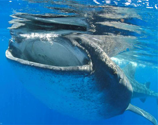Even though it was only discovered a few years ago, the afuera aggregation is already subject to intense tourist pressure. “Whale shark watching” ecotours were previously operating out of Holbox and Chiquila and it didn’t take long for those operations to propagate to Isla Mujeres and Cancun, in much closer range of the afuera site. These businesses are small, dynamic, somewhat cooperative (captains constantly report sightings over the radio and everyone rapidly converges) and highly responsive to the animal’s behaviour. They’re also one of the biggest potential risks to the whale sharks because the high powered boats used to reach quickly the offshore sites can certainly injure a whale shark. Indeed, with so many boats (we counted over 40 one day) and so many whale sharks feeding right at the surface, it’s a near statistical certainty that hulls and propellers will contact sharks at some point unless careful precautions are taken. Not to mention the cruise ships and pineapple container ships that ply the waters in the area; just one of those could do terrible damage if it plowed into the aggregation. Now that we know the animals are there, therefore, it’s essential that responsible management of the resource ensue; approaches to consider include mandatory prop guards, demarcation buoys and species protection efforts, but public education and general awareness will also be critical. CONANP, the Mexican government’s protected resources agency, will continue to play a critical role with regards to statutory controls, as they did when they established the whale shark biosphere reserve for the Holbox aggregation in 2009. Ultimately though, rules and regulations can only do so much in the face of human motivations that are not the same as those of the animals in question. Humans will always win in any conflict with an animal species, so stakeholders hold the fate of this spectacular phenomenon largely in their hands, and the ecotour operators in particular have a chance to set a fine example of careful stewardship of what is truly one of nature’s rare gifts.
