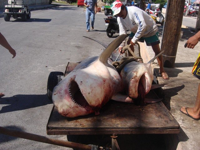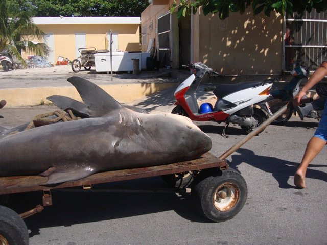 …48 hours after the latest shark attack became news, in Puerto Juarez [a small port just north of the Cancun Hotel zone], fishermen received an encouraging “go ahead” to basically go out and kill sharks… In only a few hours, a small fleet of fishermen from Cancun went up and down the coast and in this one outing it turned into a mass slaughter of sharks. By night, 19 hours later, in secrecy, in the Juarez port, they laid out 70 shark corpses, some of them females who were pregnant. The sharks had an average size of 2 meters, although some bigger ones were about 3 meters.