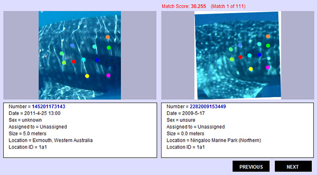 4. An ECOCEAN-affiliated scientist like me then makes the final call on whether the photo matches an existing animal (i.e. is a re-sighting), or whether it’s a first timer, in which case it gets assigned a unique ID number that will follow it throughout its days.