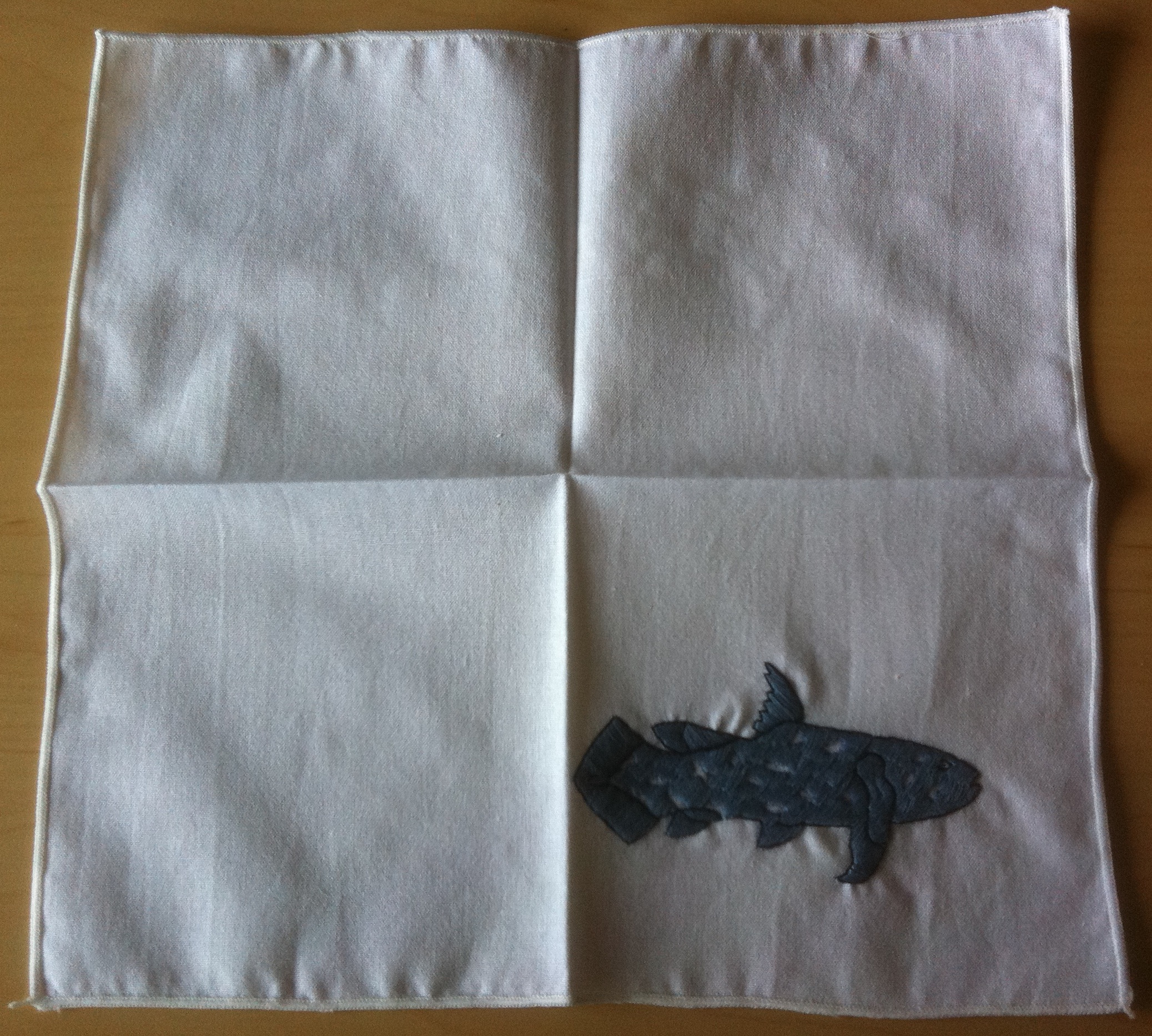 One of my greatest friends ever sent my a unexpected but welcome gift in today’s mail. Yes, my love can be bought. I know the new proud owner of a Diced Coelacanth can label from Etsy seller FishFuud. But the new pride of marine swag collection is the coelacanth handkerchief I got made by Bunaken Island Handy Crafts. Bunaken is located at the northern tip of the island of Sulawesi, Indonesia. As you may remember from my coelacanth post, a new species of coelacanth was described from Indonesia. Christine Huffard as been working with Conservation International for the last few years on marine conservation through Indonesia. You probably know here work quite well. It’s cool stuff on the evolution of mimicry in octopods, like camouflaging themselves as flatfish, the complexity of octopus sex, and octopus bipedal walking while hiding in a coconut (video below). Yes with coelacanth and octopus coolness all here together this may be the most epic post I ever written.