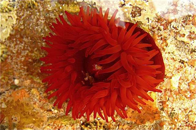 Beadlet anemone Actinia equina with tentacles extended in a rock pool near to the high water mark on Aberdour Bay. Copyright Martyn Gorman and licensed for reuse under Creative Commons License.