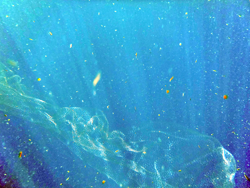 While we were tootling around the warm surface waters gathering whale shark photo ID’s, deploying satellite tags and generally having good clean wholesome scientific fun, we noticed that some of the fish eggs were not floating freely but were gathered together in diaphanous sheets. (See what I did there? I could have said see-through or translucent, but I didn’t; I said diaphanous. I’ve always wanted to use the word diaphanous in a blog post; it brings to mind images of soft and dangly arm wattle silhouetted through your grandma’s nightie…) ANYHOO, here’s what they looked like:
