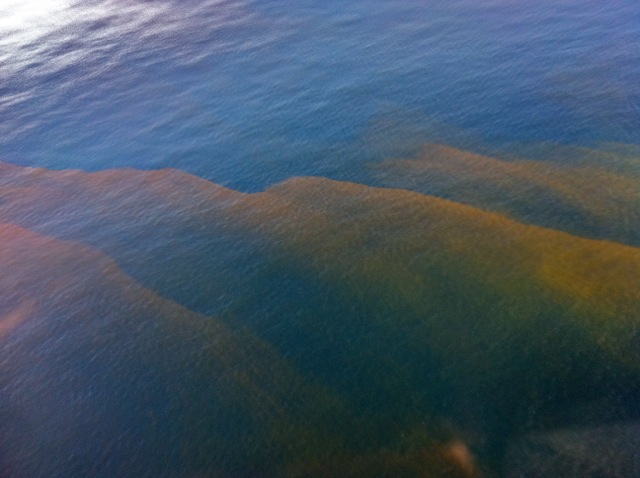 Check out these gorgeous photos of blue whales going through the red tide! Eddie Kisfaludy took them with his iPhone from a small plane off La Jolla Shores, and they are published here with his permission. (Thanks, Eddie!) For more information on the current red tide – still going strong today – see our FAQ with Scripps professor Peter Franks and Ed Joyce’s interview with Scripps researcher Melissa Carter.