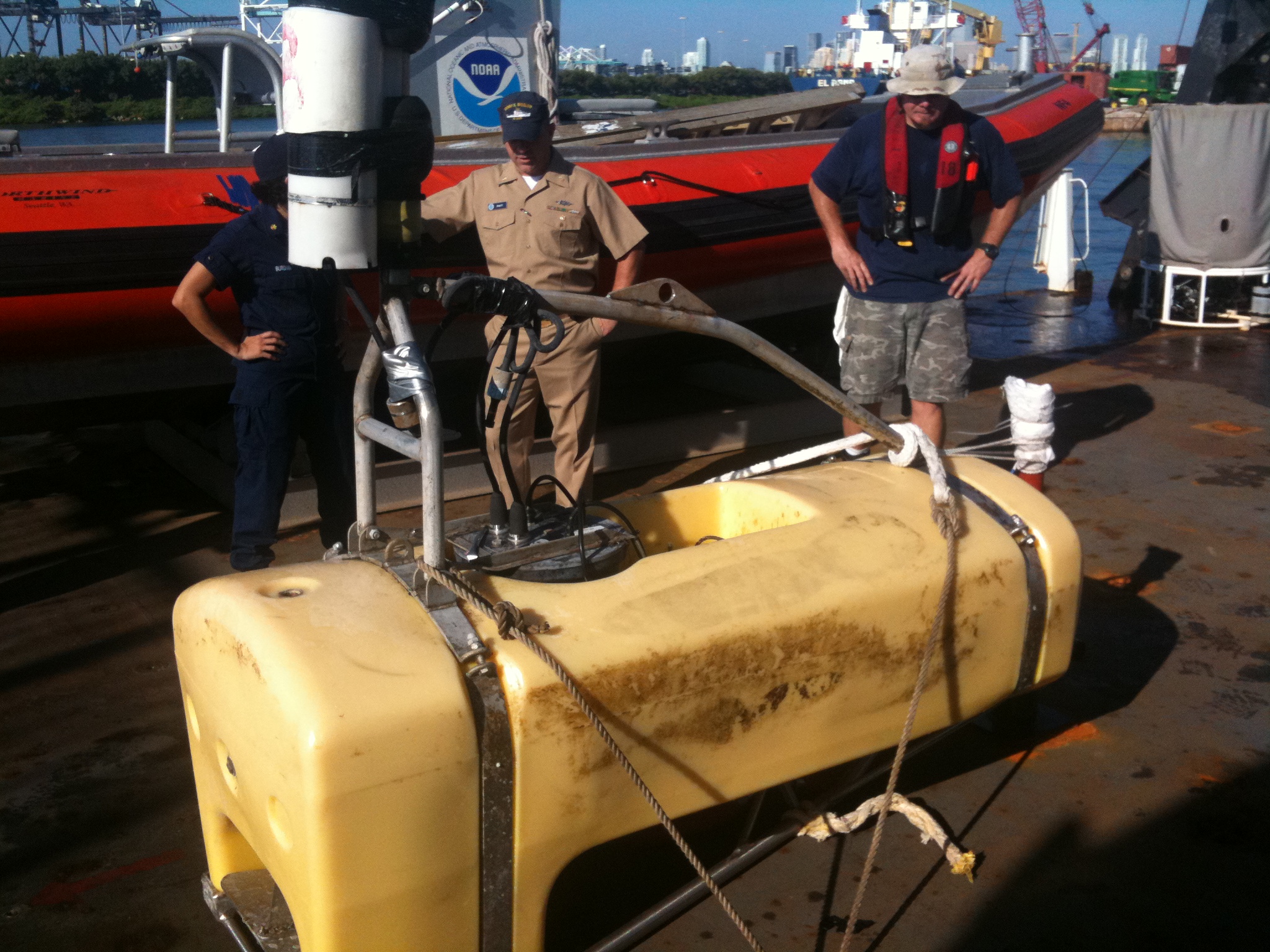 A big yellow section from a floatation platform was found off Miami yesterday. Ryan Haines from the U.S. Coast Guard Station Miami is trying to locate the owners. Email us here at DSN ([email protected]) if this is your lost gear. Also in the DSN lost and found box are 4 empty bottles of beer, a red stocking hat, and a can of naval jelly.