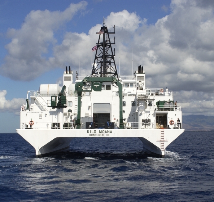 R/V KILO MOANA operated by the University of Hawaii Marine Center and designed to operate in coastal and blue water areas. The unique SWATH hull form provides a comfortable, stable platform in high sea conditions.