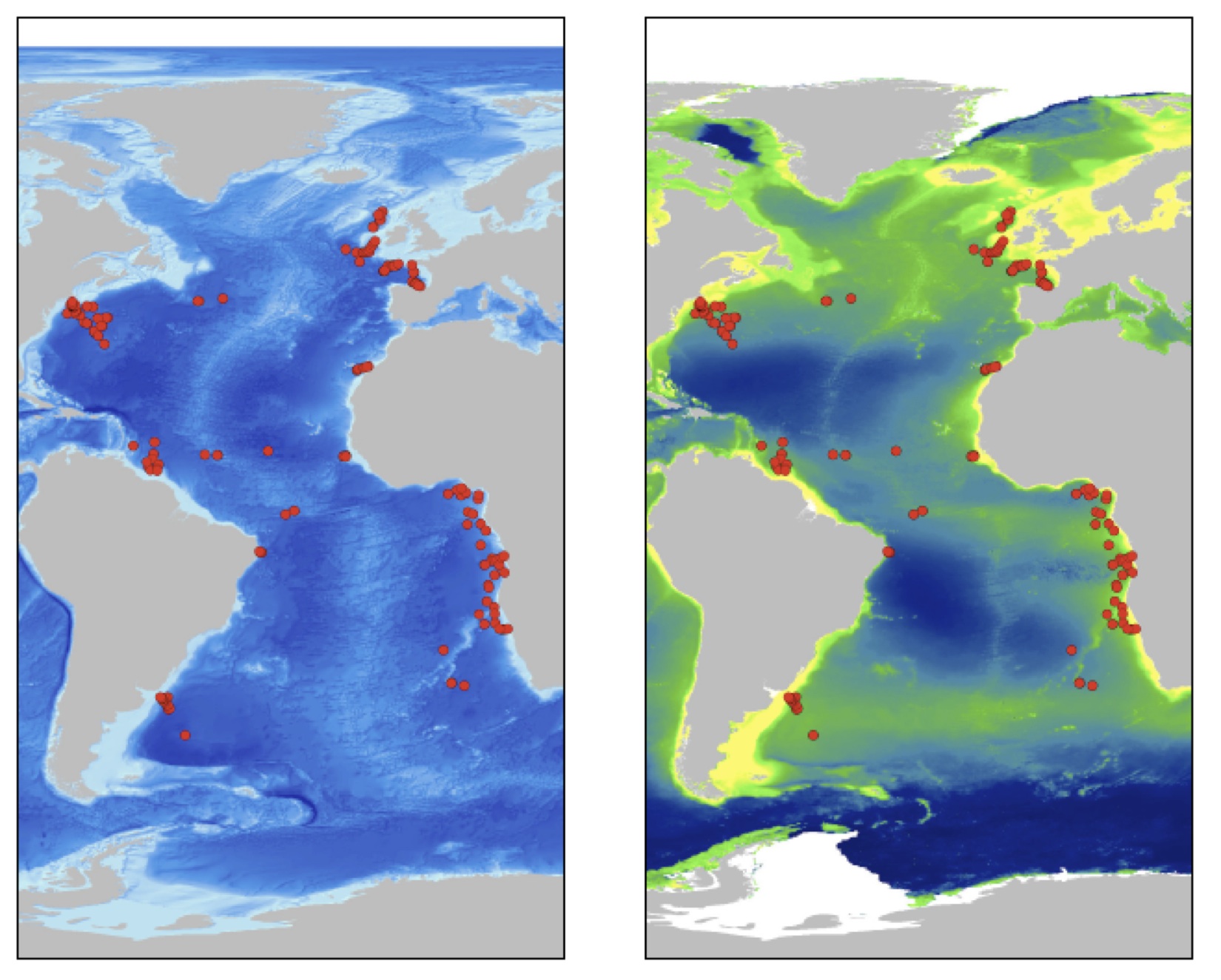 Today in the Proceedings of the Royal Society with collaborators Allen Hurlbert and James Stegen from the University of North Carolina, I unravel the paradox of the deep a little further. Given the difficulty of conducting deep-sea work, patterns of diversity of entire oceans are rare. In 2008, John Allen, working previously with Howard Sanders, published an amazing dataset of deep-sea bivalves taken form 270 sites across the Atlantic Ocean. We combined this dataset with data on bivalve sizes and genetic relatedness with multiple datasets on the environment, including annual marine snow accumulation. We found that the availability of both chemical, i.e. marine snow, and thermal, i.e. temperature, energy explained differences in compositions of bivalves communities across the Atlantic Ocean. Interestingly, and in contrast to current thinking (including my own!) that invertebrates with planktotrophic larvae should be able to disperse everywhere, we also detected the importance of dispersal ability in explaining community differences. In other words, some of what determines where a bivalve is located in the Atlantic is determined by its dispersal ability and the amount of energy it requires.