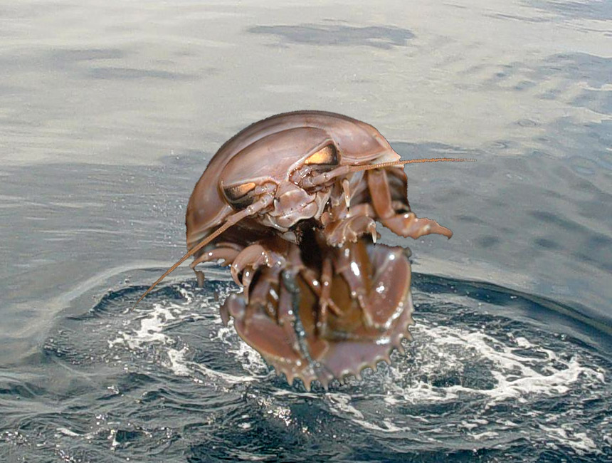 And of course, what anthology of jumping marine critters would be complete without the famous leaping giant isopods (Bathynomus giganteus) of Upper Djiboutistan: