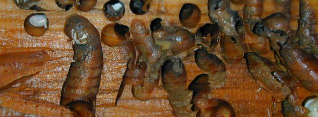 Xylophaga burrows in wood. Image from the Field Museum