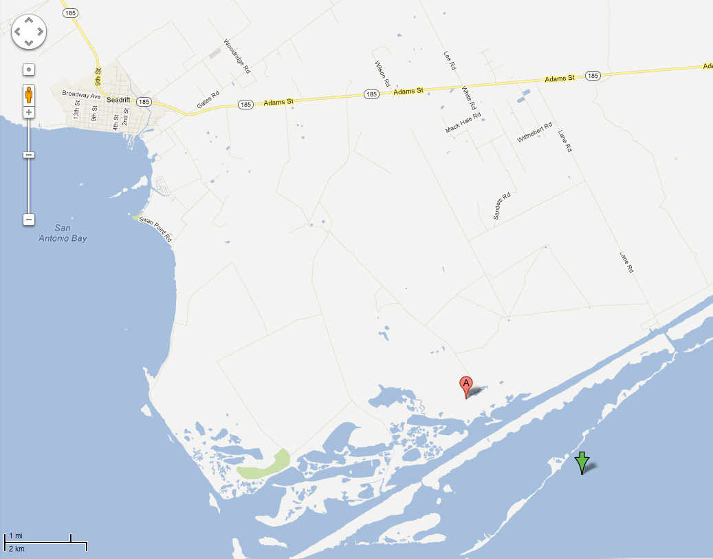 It’s likely lying on the beach of that tiny spit of land, which is called Long Island. There’s a boat ramp close by at the end of Lane Rd. that comes off Adams St (Rt. 185), which connects Seadrift to Pt. O’Connor. Any help much appreciated, please share with your Texas friends and colleagues. People can contact me through this website.