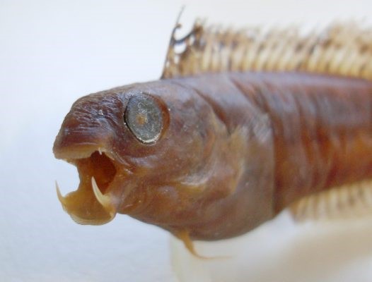 Unlike the species discussed so far, perhaps the most incredible group of Vampire Blennies, the genus Meiacanthus, uses their fangs for defense, not attack. They have a very specialized venom gland enveloping the base of their canines. When attacked by larger fish, they use their long sharp fangs to inject venom into their attacker. During my last trip to the Red Sea, when attempting to carefully take a small tissue sample of a live Black-Lined Vampire Blenny and return it to the reef, it bit me! Even though there are scattered reports of painful bites, my bite wasn’t painful at all. I was just shocked to see that a small fish like that (about 2 inches long) could cut my skin in one bite with such ease: the fangs were extremely sharp and strong.