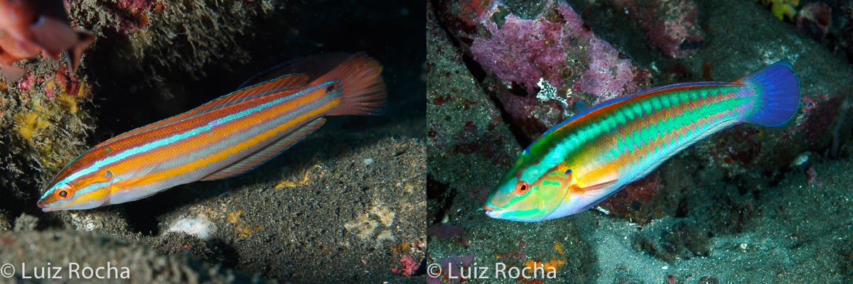 Wrasses are well known for their sex changes, which are usually accompanied by dramatic color changes, and most are protoginous hermaphrodites. But unlike our own species, where girls dress to impress, in wrasses it’s usually the opposite: males are the ones who put on the fancy dresses.
