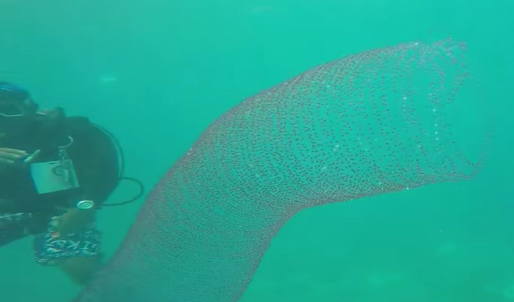 My professional opinion? This video is not of a pyrosome. But does this make it less exciting?ABSOLUTELY NOT! If anything, this is more exciting. These egg masses are incredibly rare. The adults are large (1 meter in length and 30 kg) but elusive, and lay these eggs in the open ocean. This video is one of the best I’ve seen, and certainly one for the record books. If I were there I would have been screaming with joy through my regulator. I hope the divers know what a lucky sighting this was. And next time I hope they invite me, because I’d love to see one of these up close. (and I’d really love to be diving in shorts right now!)