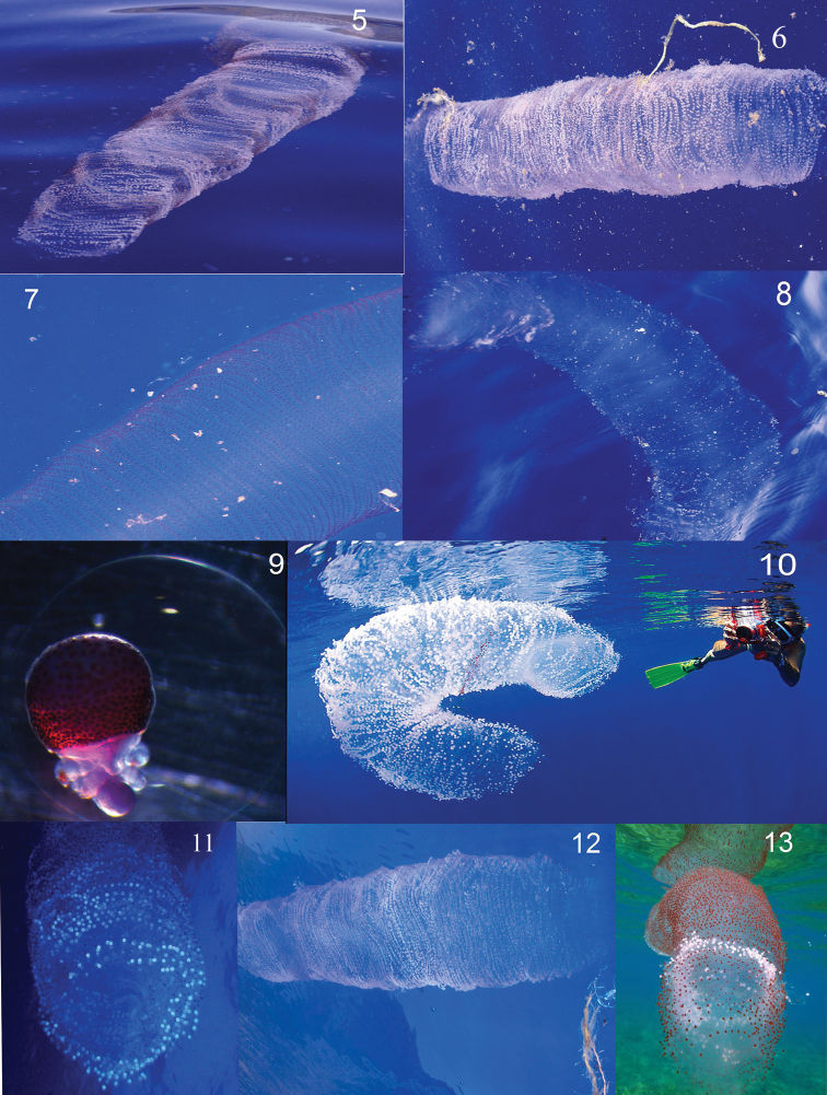 If you’d like to learn more about diamond-shaped squid (Thysanoteuthis rhombus) or their egg masses, check out these two great papers